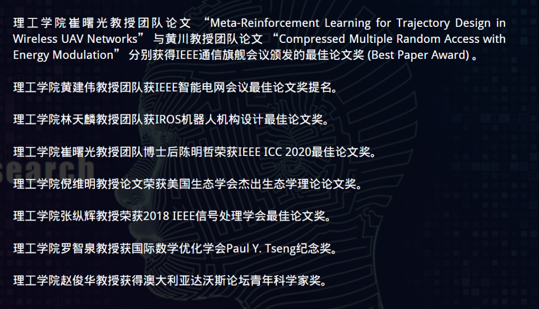 理工学院秉承香港中文大学优良的学术传统,沿用香港中文大学已有的严格的质量控制体系,结合国际学科发展趋势,与多所世界著名大学展开合作,借鉴海外高等教育的成功经验,定位于战略性新兴理工学科,招聚世界级的教授队伍,构建中西方结合的独特学习环境,培育新一代具备专业知识、多元才能和国际视野的科技领导人才。 理工学院,作为港中深初创学院之一,自2015年开始招生以来在短短六年间,学院以着“深圳速度”飞快成长,并创造出了令人自豪的优异成绩。 理工学院学子与教授今时今日能够取得如此成就,靠的从来都不是浮夸的辞藻或者是华丽的包装。本着脚踏实地做科研的实干家精神,学院教职工与学生不断地交上令人满意的答卷,似乎他们心中都有一个信念,那就是实力全凭数据说话。那么接下来,就让我们一起来看看这些数据吧。 为了更好地培育勇于创新、高瞻远瞩、具备全球视野并努力改善业界和社会的优秀人才,理工学院在全球范围内招聚世界级的一流教授团队。